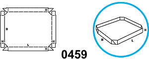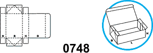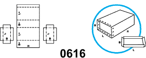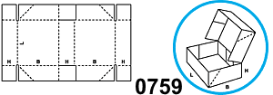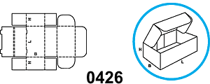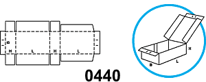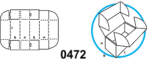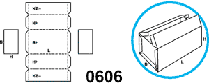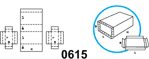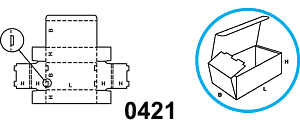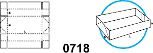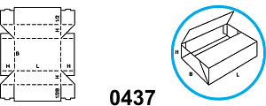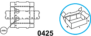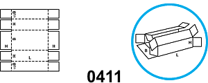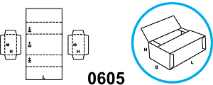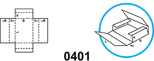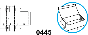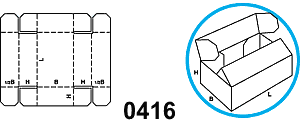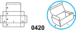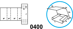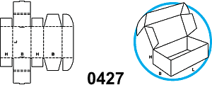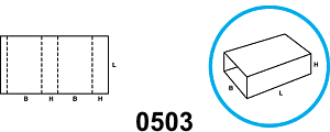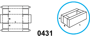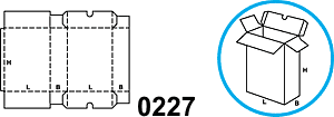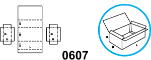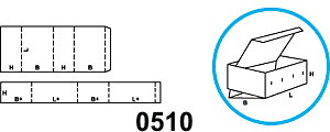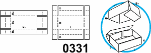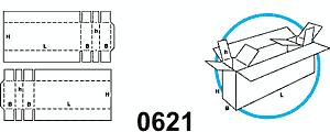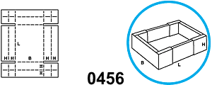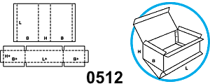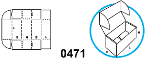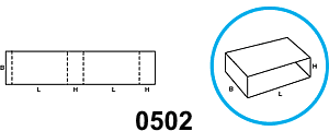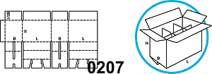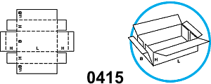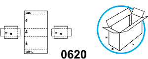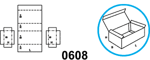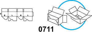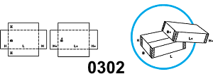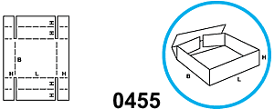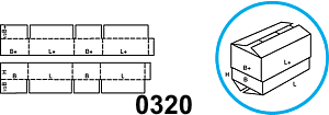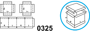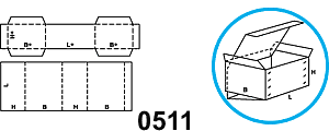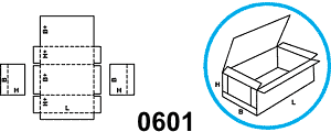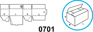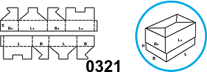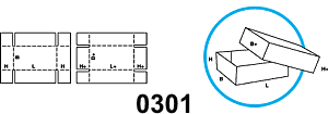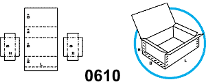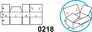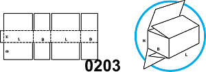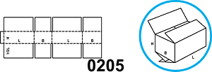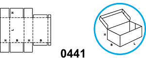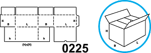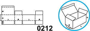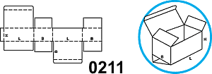 The drawing below shows the most common version of corrugated cardboard packaging: a fefco 0201 (F0201), also known as an American folding box.